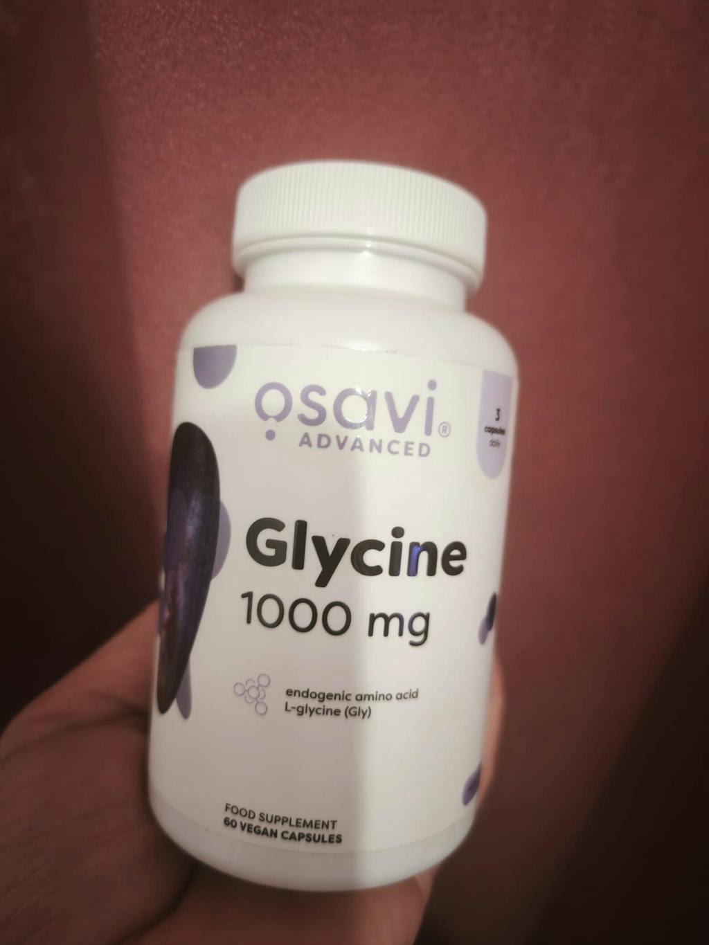 Glicina 1000 mg Osavi este suplimentul premium cu L-glicină pură – aminoacidul esențial pentru calitatea somnului, sinteza colagenului și echilibrul sistemului nervos. Fiecare capsulă oferă 1000 mg glicină într-o formulă vegană, fără aditivi inutili, cu etichetă curată. La Protein4Life găsești produsul original Osavi cu import direct și consultanță specialist inclusă.